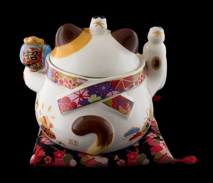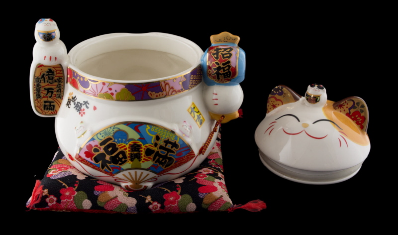 Grand Pot à bonbons Chat japonais Maneki neko Porcelaine Ø 25cm 554