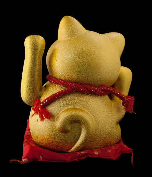 FAMILLE CHAT JAPONAIS PORTE BONHEUR MANEKI NEKO DORE PATTE GAUCHE ANIMEE 350