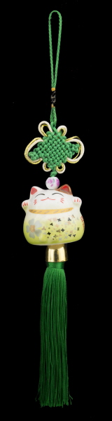 Suspension Maneki-Neko vert-Chat Japonais Chance Richesse-Feng Shui