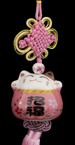 Suspension Maneki-Neko rose -Chat Japonais -Feng Shui-Chance Bonheur