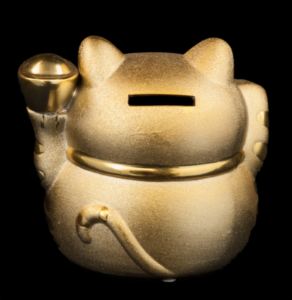TIRELIRE CHAT JAPONAIS MANEKI NEKO PROSPERITE CERAMIQUE DORE 100 - B11